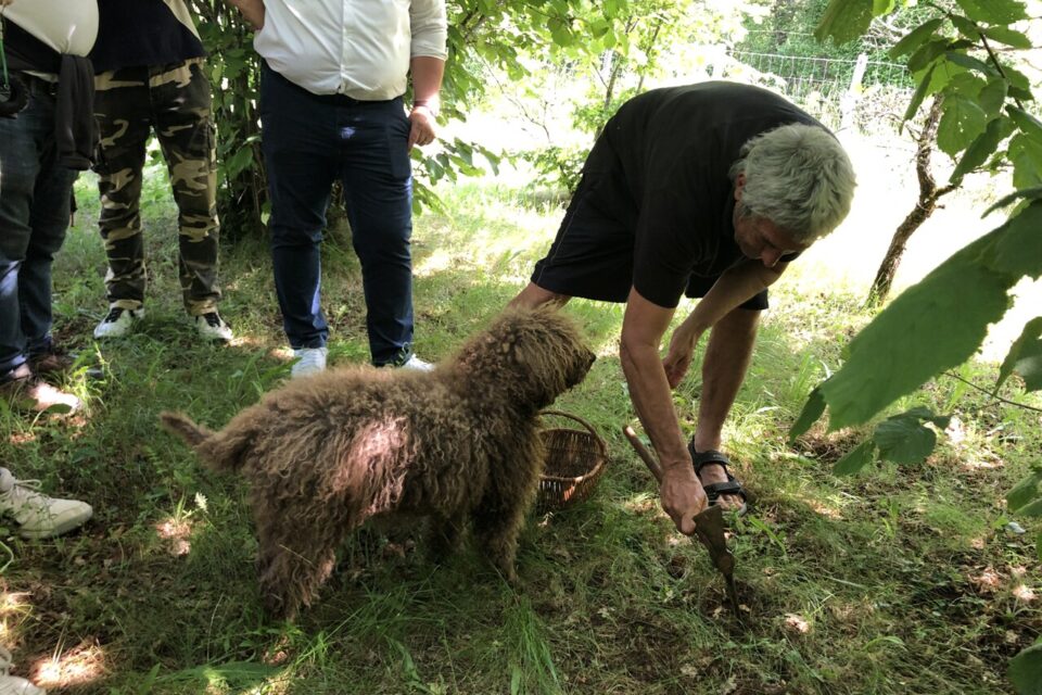 Éric Allegret s’est prêté à une démonstration de cavage avec Neige, sa chienne de 6 ans, qui s’est révélée particulièrement efficace. (©LL/Réussir le Périgord)